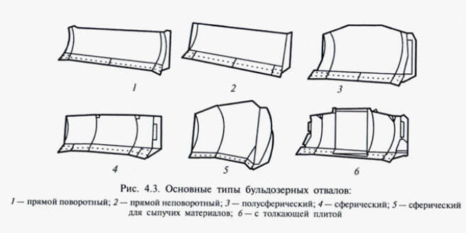 Эффективность работы бульдозера во многом зависит от типа используемого отвала. Наиболее распространёнными являются прямые отвалы, которые подходят для большинства стандартных операций. Они считаются универсальным решением для большинства стандартных операций. Сферические и полусферические модификации демонстрируют лучшие результаты при работе с сыпучими материалами. Поворотные конструкции позволяют эффективно работать на наклонных поверхностях. Особое место занимает V-образный отвал, обеспечивающий максимальное заглубление в плотные грунты.